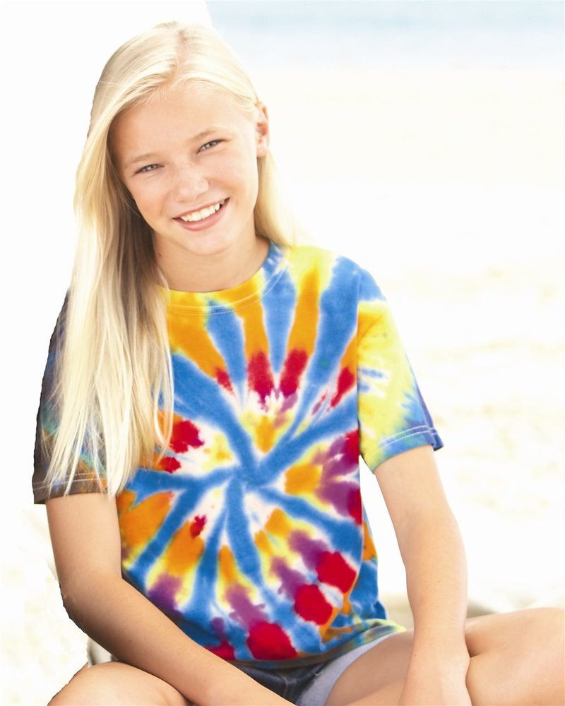 Dyenomite Youth Rainbow Cut-Spiral Tie-Dyed T-Shirt 20BTD