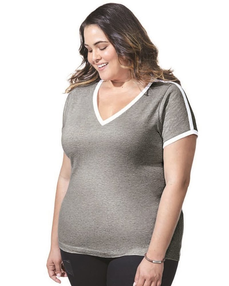 LAT Women's Curvy Retro Ringer Premium Jersey V-Neck Tee 3832