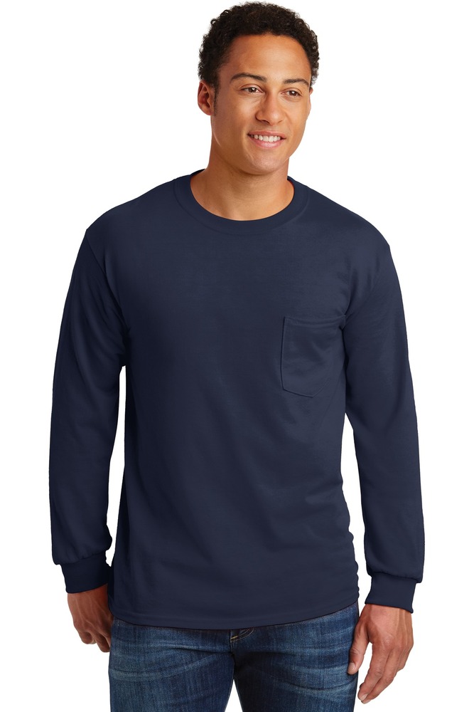 Gildan Ultra Cotton ® 100% US Cotton Long Sleeve T Shirt with Pocket 2410