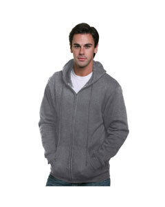 9.5 oz 80% heavyweight preshrunk cotton/20% polyester full zip hooded sweatshirt; Made in the USA; Double lined hood with matching drawstring; Front pouch pockets; Rib knit cuffs and waistband with Lycra®.;