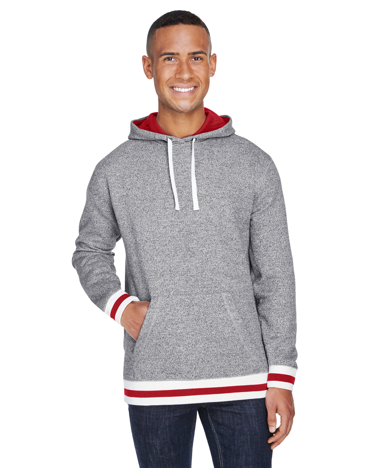 J. America Adult Peppered Fleece Lapover Hooded Sweatshirt JA8701