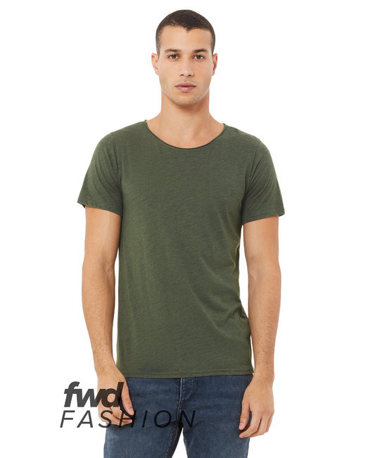 3.8 oz, 50% polyester, 25% airlume combed and ringspun cotton, 25% rayon, 40 singles; Elevated raw neck detail adds just the right amount of cool; Triblend fabric makes it wear-all-day soft to the touch; FWD Fashion collection exclusive; Side-seamed; Tear away label;