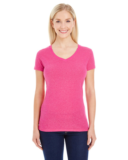 J. America Ladies' Glitter V-Neck T-Shirt JA8136
