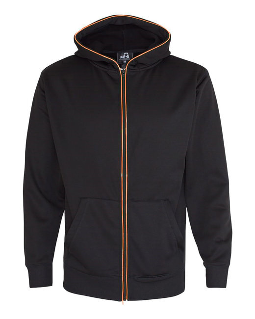 6.5 oz.; 100% Polyester; EL (Electroluminescent Lighting) lit piping on zipper placket and hood; Three light-up settings; Batteries not included; Set-in sleeves and pouch pocket;