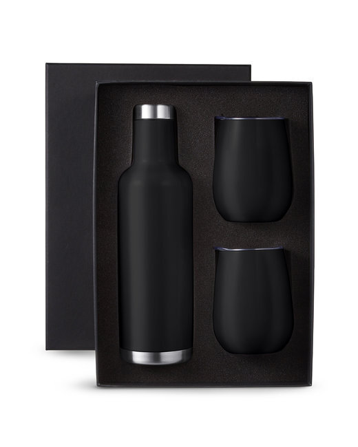 - Gift set includes one MG406 25 oz. Alsace Vacuum Insulated Wine Bottle and two matching color pieces of our PL-2229 10 oz. Stemless Vacuum Wine Tumbler with Lid in elegant black gift box