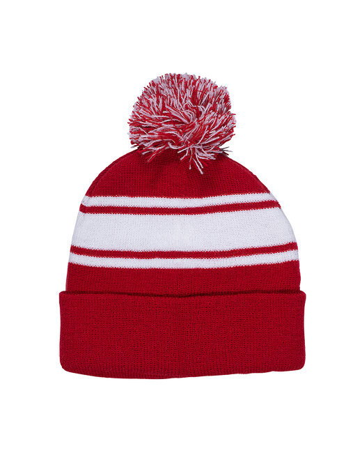 - 100% Acrylic rib knit beanie featuring a two-tone pom pom on top
