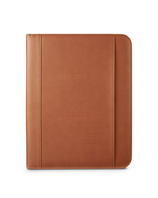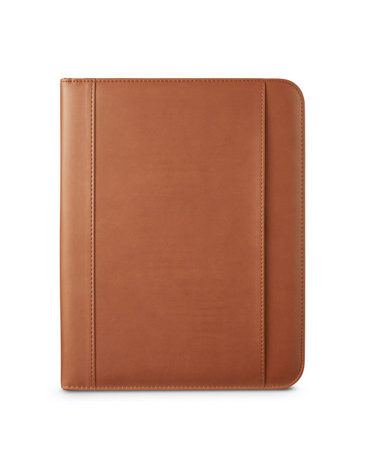 - Elegant full zip hard cover Padfolio with cover with front open pocket and Leeman logo subtly debossed on the back cover