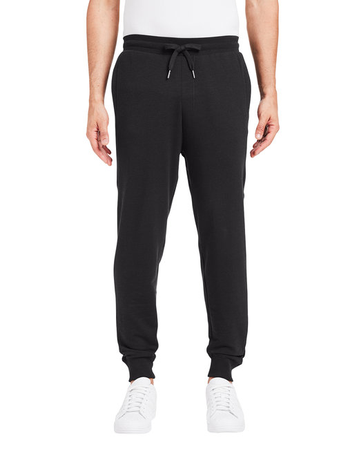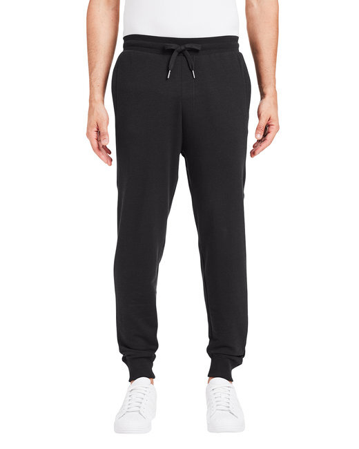 53% organic cotton, 43% bamboo viscose, 4% lycra® spandex, 220gsm brushed back fleece; Temperature regulation, UPF 50+, moisture-wicking, anti-odor; Made with organic cotton and renewable bio-degradable bamboo fibers ; Flat draw cord with metal tipping exit to outer pant; 2x2 flat rib waist band with encased elastic; Soft twill label at inner back waist band; Faux fly stitch, open side pockets with self fabric welt covering; Drop logo tab folded over left bottom pocket welt; Coverstitch seaming at side legs and across back at knee placement; Zipper back pocket with rib welt covering zipper, rib bottom cuffs; Care and content label sewn into waist band at back left; Semi-fitted, tapered to bottom cuffs; Fabric and garments are manufactured in a facility 100% powered by solar and wind energy. Fabric and garments are manufactured in a GreenCo certified facility. 450g of CO2 are saved with the production of each garment ;