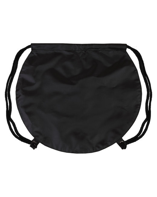- Made of 210D Polyester and features grommeted adjustable soft black Nylon shoulder straps that double as drawstring